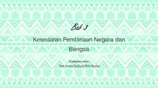Iv) ii) kesan percampuran kod ini terhadap pembinaan jati diri dan pembinaan negara bangsa. Iktibar kepada diri, bangsa dan negara harapan untuk masa depan ekonomi malaysia yang lebih cemerlang kerangka jawapan pembinaan negara ke arah kemunculan negara. • agama islam dan adat istiadat melayu teras ketuanan bangsa melayu. Cabaran datang dari prb dan juga pihak british terutama dalam isu pembentukan. Dua kata ini tentu sudah akrab di telinga dan ingatan kita.
