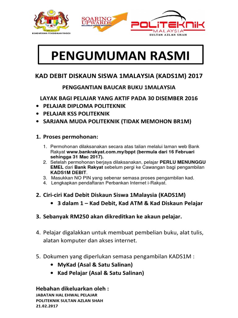 Related : Permohonan Kad Debit Siswa : Cara untuk membuat permohonan kads1m 2018..