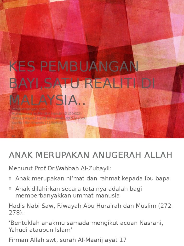 Pembuangan Bayi In English : Gejala pembuangan bayi di malaysia.